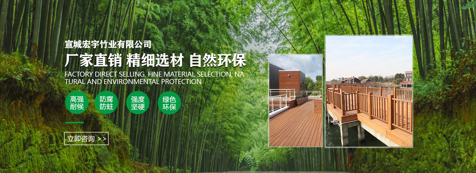 宣城宏宇竹業(yè)有限公司位于“華夏毛竹首鎮(zhèn)”的安徽省宣城市涇縣蔡村鎮(zhèn),公司致力于竹材工業(yè)化應(yīng)用與研發(fā),已完成竹工業(yè)化利用第五代技術(shù)-竹基纖維復(fù)合材技術(shù)應(yīng)用研發(fā),并獲得2015年度國(guó)家科技進(jìn)步獎(jiǎng)二等獎(jiǎng)。公司擁有行業(yè)幅面3850*1320mm的5400噸壓力的20層熱壓機(jī),可以直接壓制3850*1180*52的坯板,具備年產(chǎn)10000立方米的生產(chǎn)能力。宏宇竹業(yè)以“領(lǐng)導(dǎo)竹材恒久價(jià)值”為己任,以匠心的工藝,銳意進(jìn)取的管理團(tuán)隊(duì)打造一個(gè)產(chǎn)品多樣化、市場(chǎng)多元化的科技型企業(yè)。公司從成立之初一直重視品牌建設(shè),公司注冊(cè)商標(biāo)“箐剛“竹,致力打造戶外竹材優(yōu)異品牌,讓宏宇竹業(yè)深入每一個(gè)消費(fèi)者的心。